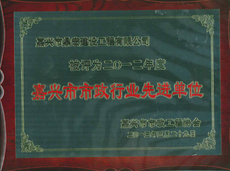 2012年度嘉興市市政行業(yè)先進(jìn)單位